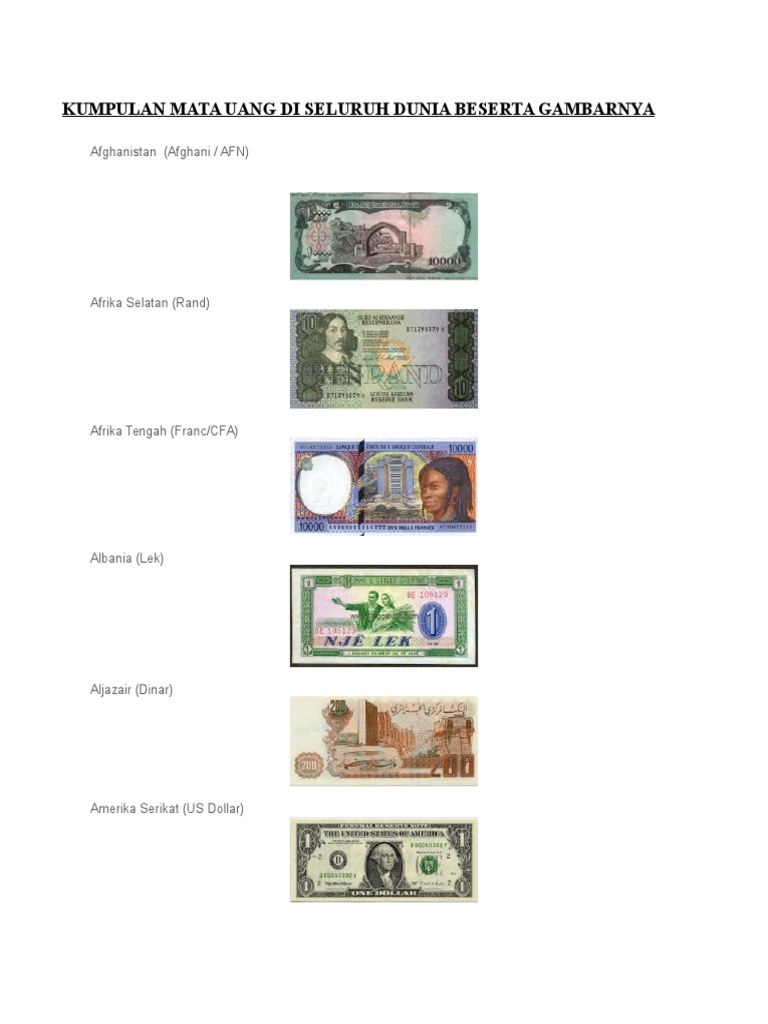 Beserta Gambarnya Mata Wang Dunia Mengikut Negara
