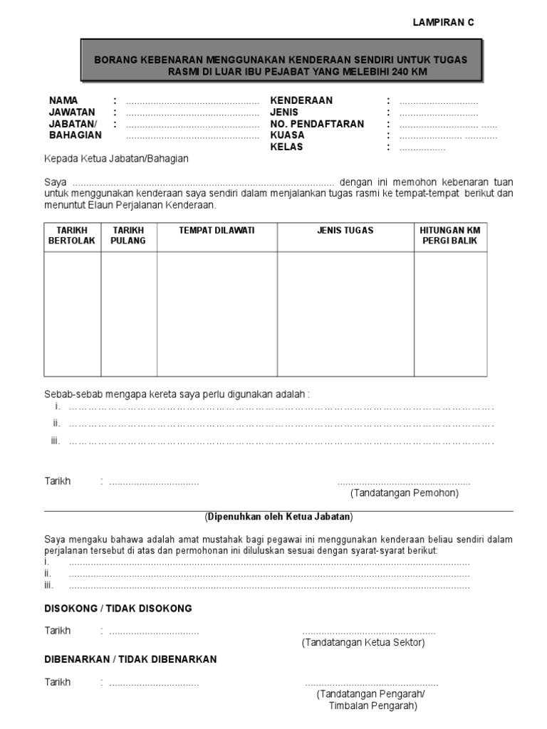 Borang Kelulusan Menggunakan Kenderaan Sendiri Pdf
