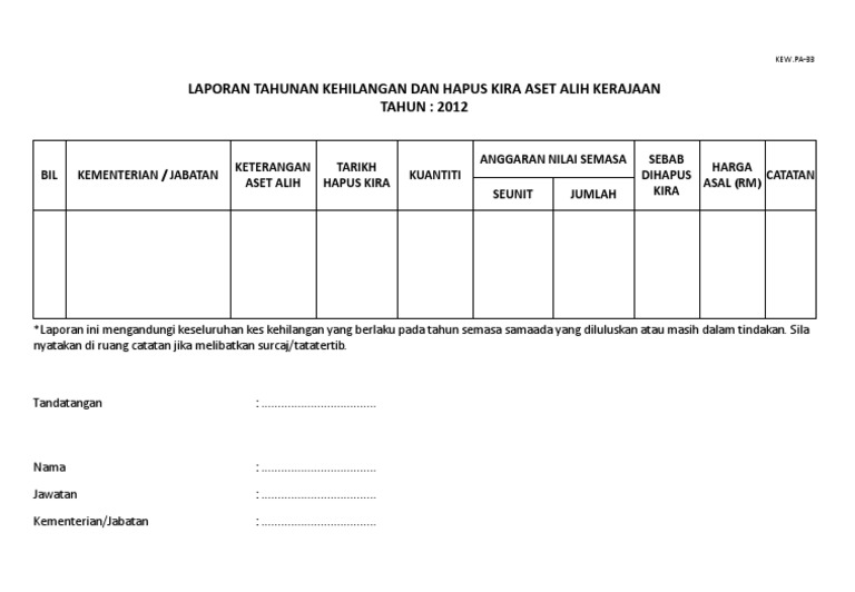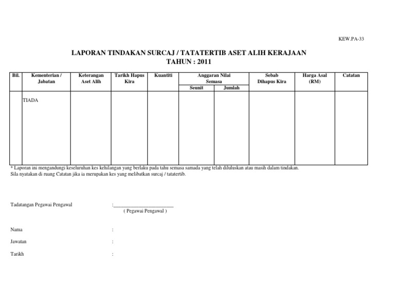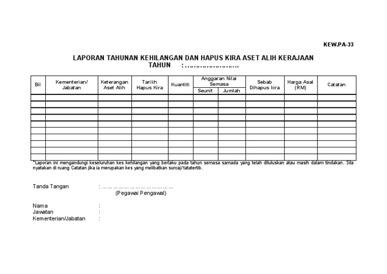 33 Kew Pa 33 Laporan Awal Kehilangan Aset Alih Doc Pekeliling Perbendaharaan Malaysia Am 2 8 Lampiran A Kew Pa 33 Laporan Awal Kehilangan Aset Alih Course Hero