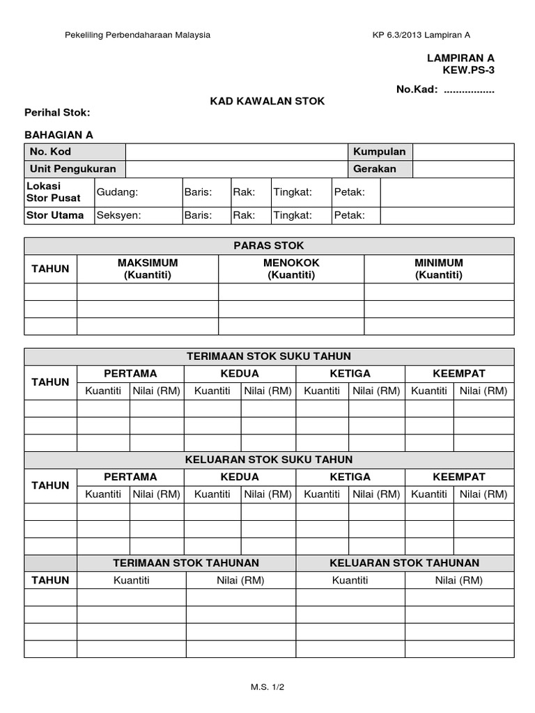 Kew Ps 3 Doc Kew Ps 3 No Kad Kad Kawalan Stok Tatacara Pengurusan Stor 53 Perihal Stok Bahagian A No Kod Kumpulan Unit Pengukuran Gerakan Lokasi Stor Course Hero