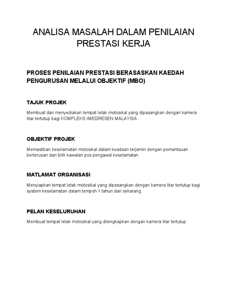 Analisa Masalah Dalam Penilaian Prestasi Kerja