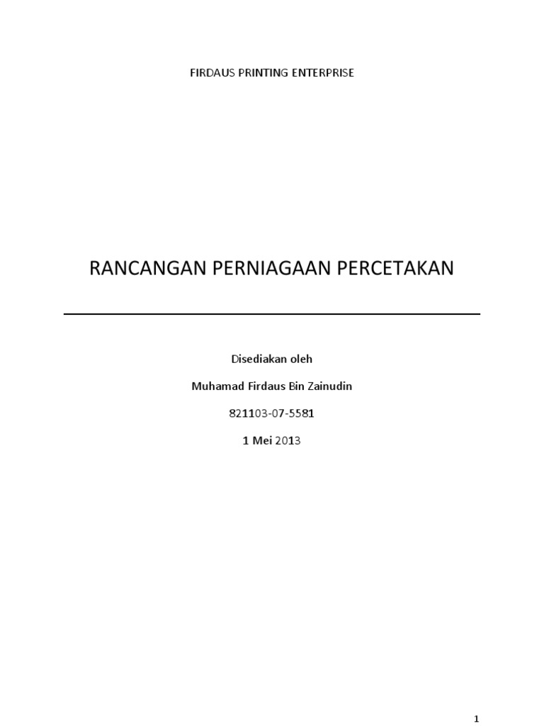 Contoh Rancangan Perniagaan Percetakan