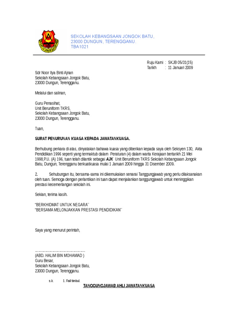 Contoh Surat Penurunan Kuasa Pengetua Pengakap Doc Document