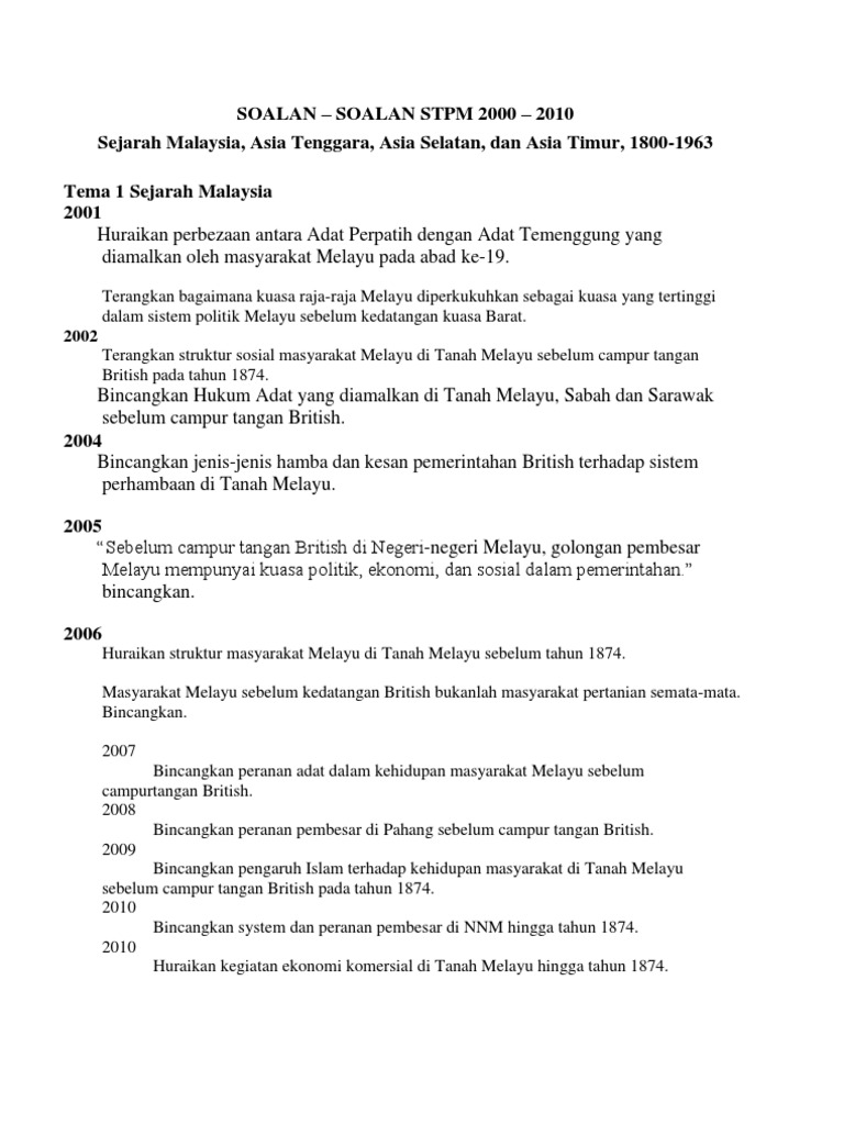 Soalan Stpm 2000 2010 Sejarah Malaysia Asia