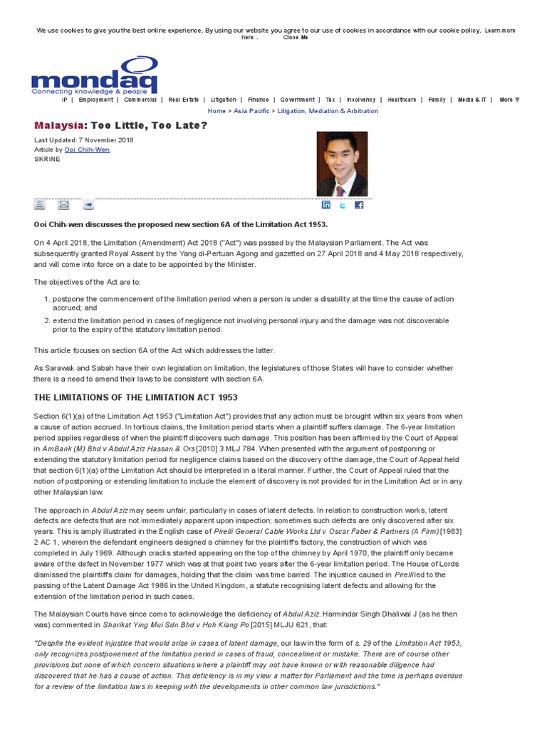Latent Defects Too Little Too Late Litigation Mediation Arbitration Malaysia Damages Statute Of Limitations