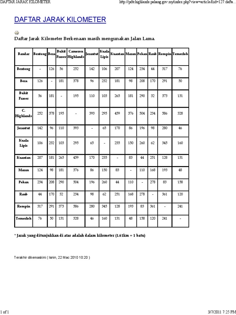 Daftar Jarak Kilometer Pahang Ptdg Pdf