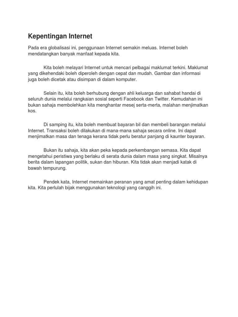 Karangan Kebaikan Penggunaan Internet