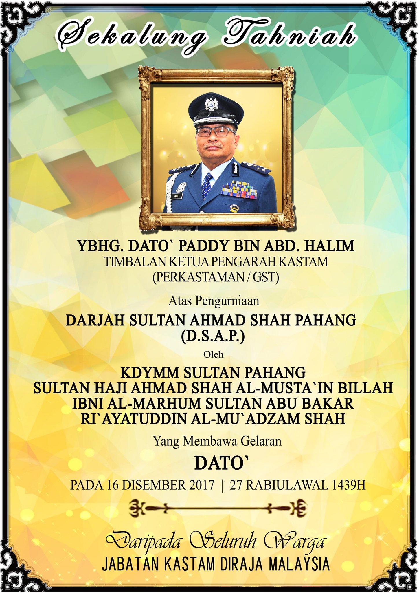 Kastam Malaysia On Twitter Setinggi Tinggi Syabas Dan Tahniah Kepada Ybhg Dato Paddy Bin Abd Halim Timbalan Ketua Pengarah Kastam Perkastaman Gst Https T Co Jjdfx387iy