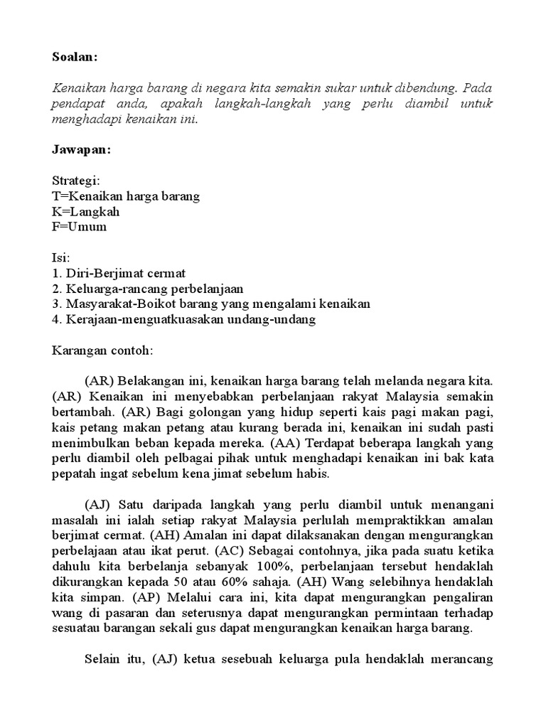 Karangan Pmr Langkah Mengatasi Kenaikan Harga Barangan
