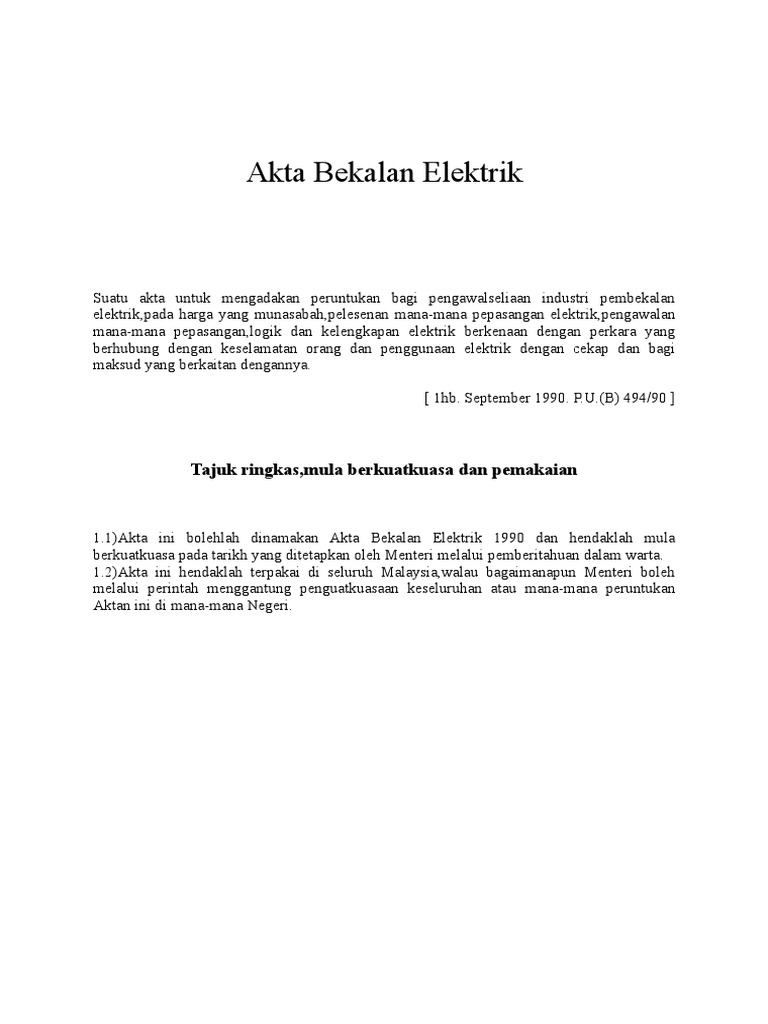 Akta 447 Akta Bekalan Elektrik 1990 Pages 1 50 Flip Pdf Download Fliphtml5