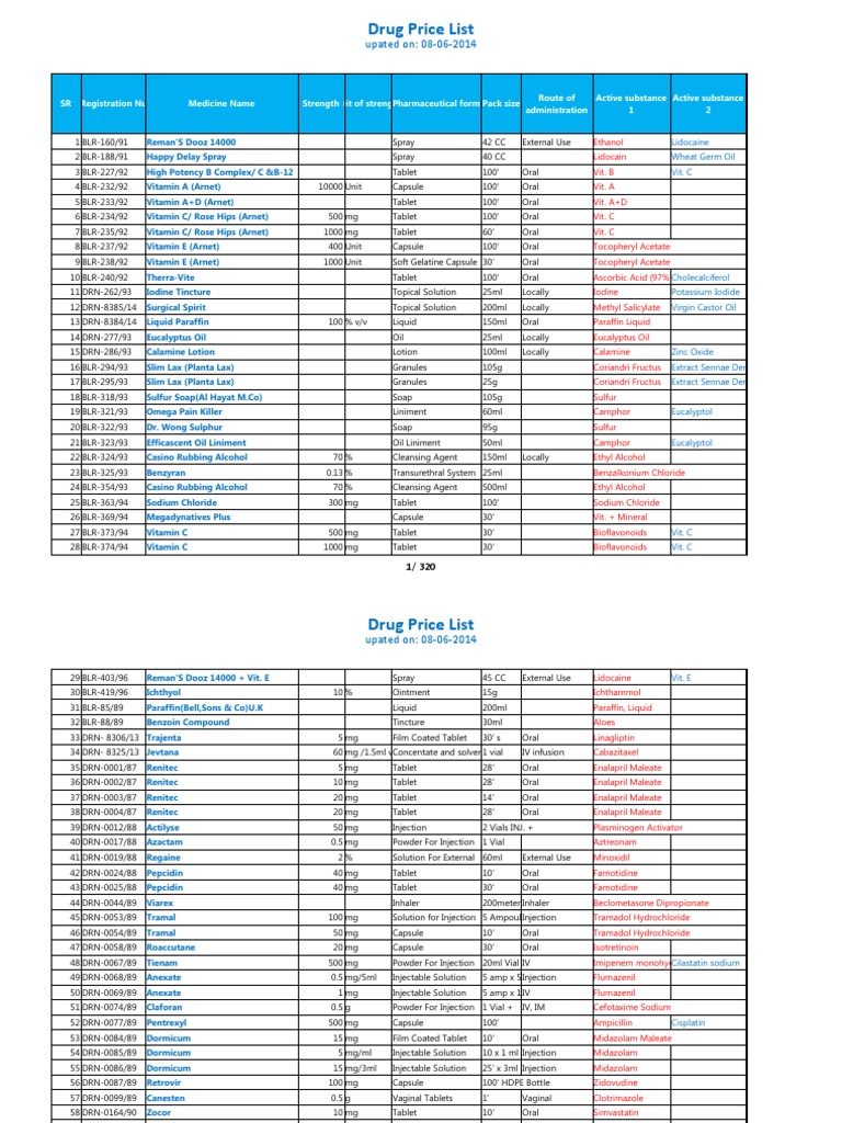 Baharain Nhra Ppr 2014 Drug Price List 08 06 2014 Topical Medication Vitamin C