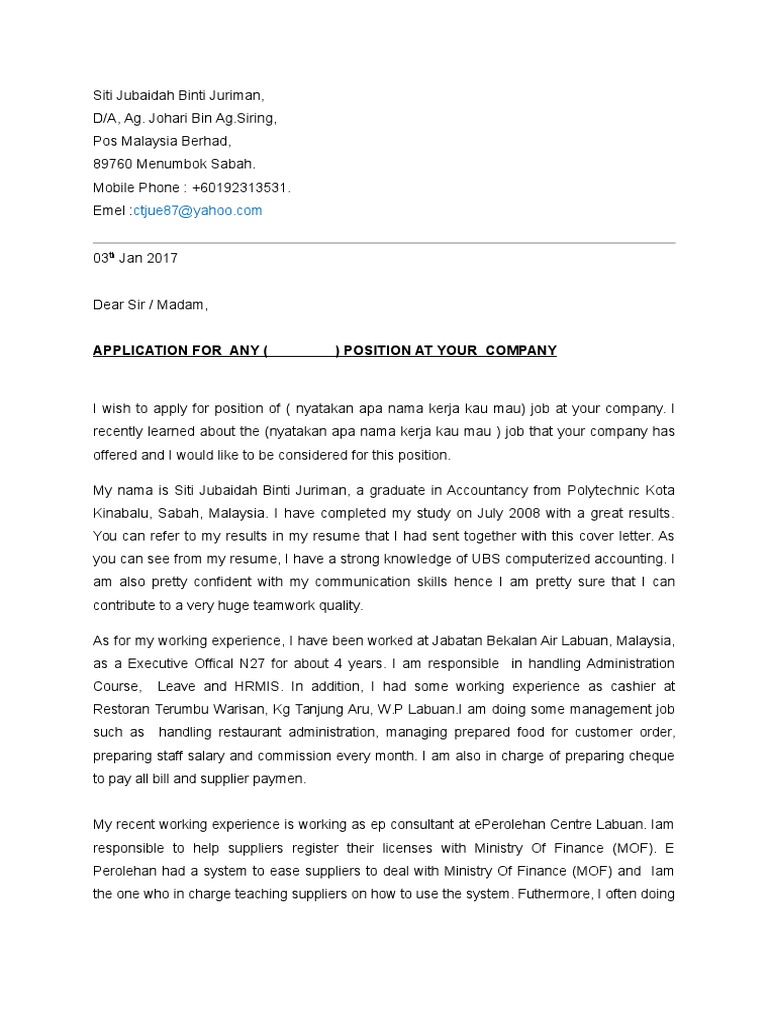 Siti Jubaidah Binti Juriman Cover Letter Bi