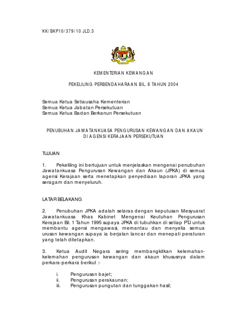 Pekeliling Perbendaharaan Bil 8 2004 Jawatankuasa Pen Gurus An Kewangan Amp Akaun