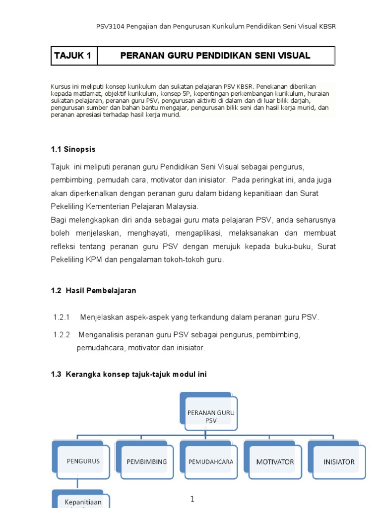 Psv3104 Pengajian Dan Pengurusan Kurikulum Pendidikan Seni Visual Kbsr