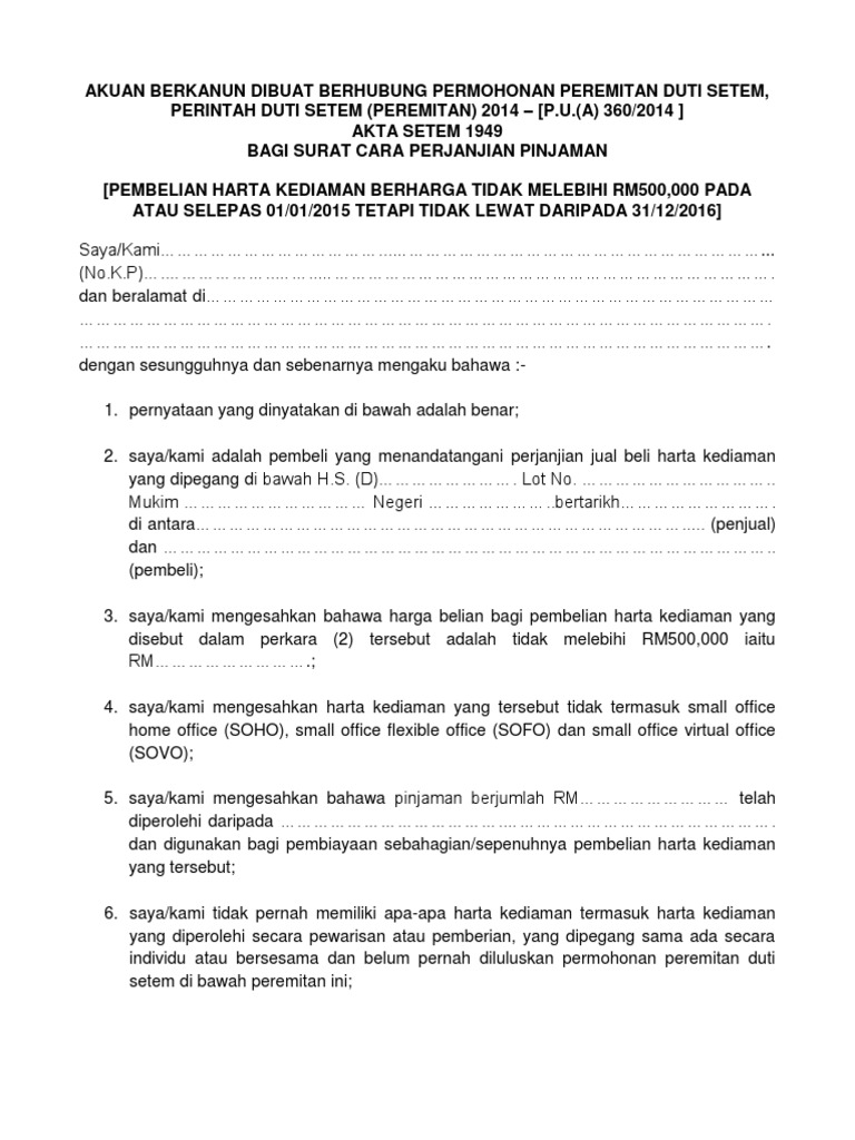 Perintah Duti Setem Peremitan 2019 Stamp Duty Remission Order Pdf Free Download