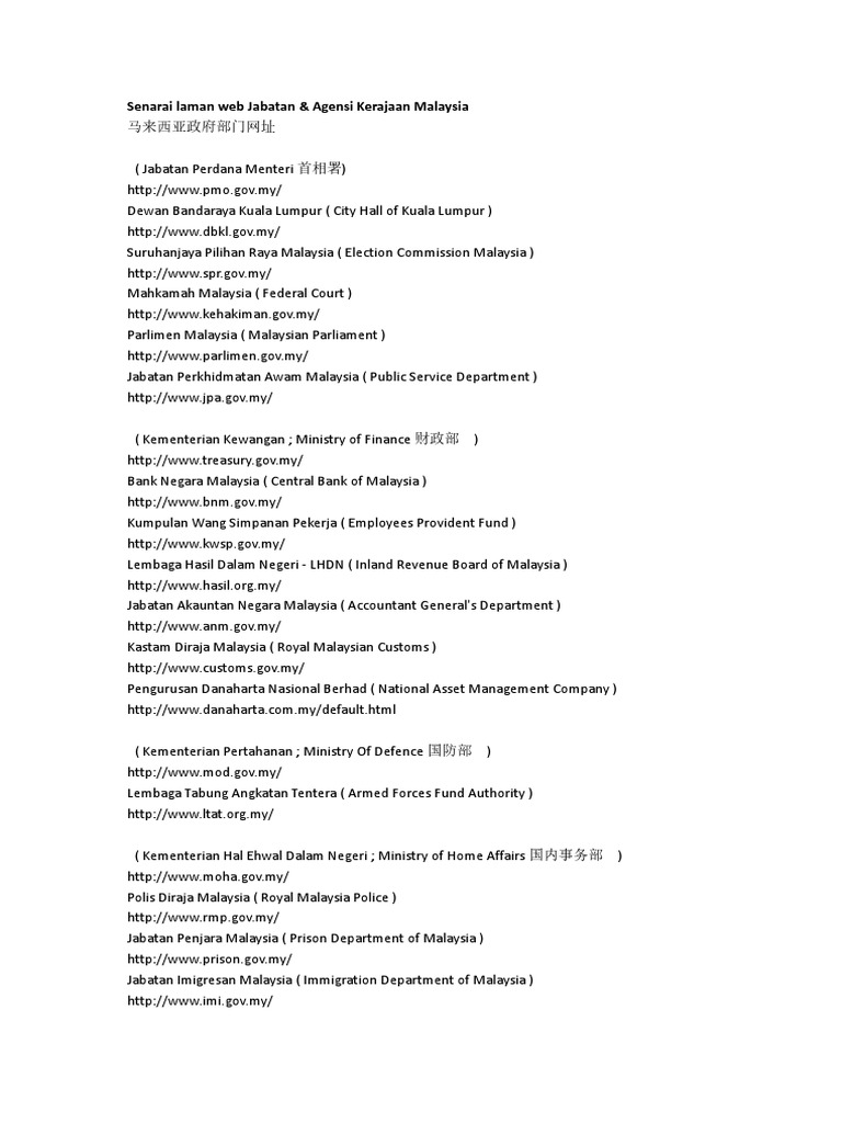 Senarai Laman Web Jabatan Agensi Kerajaan Malaysia