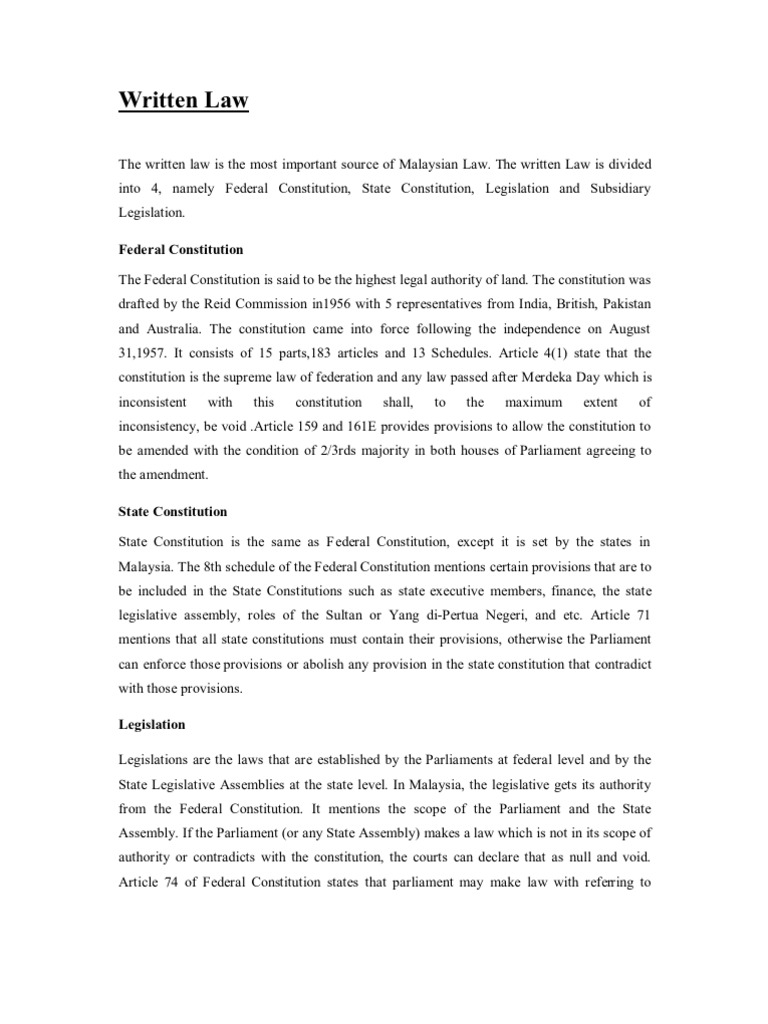 Sources Of Written Law In Malaysian