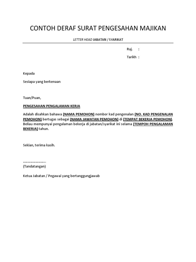 Format Surat Pengesahan Majikan Tempoh Pengalaman Contoh