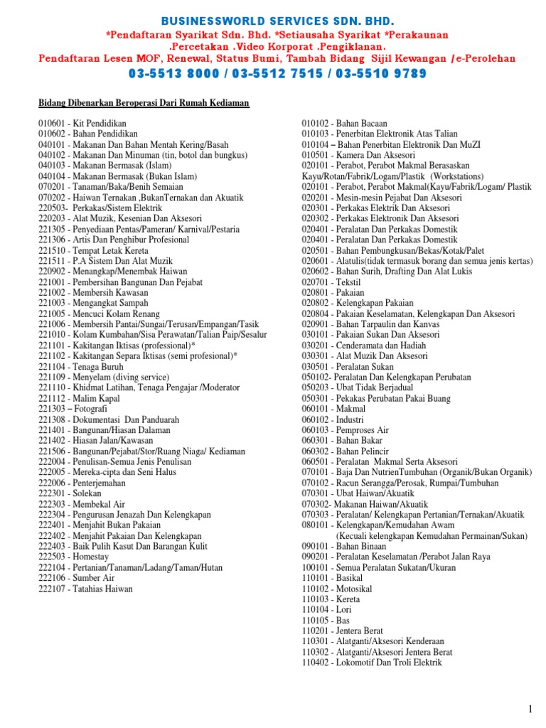 Senarai Kod Bidang Pendaftaran Bekalan Pendaftaran Lesen Kementerian Kewangan Facebook