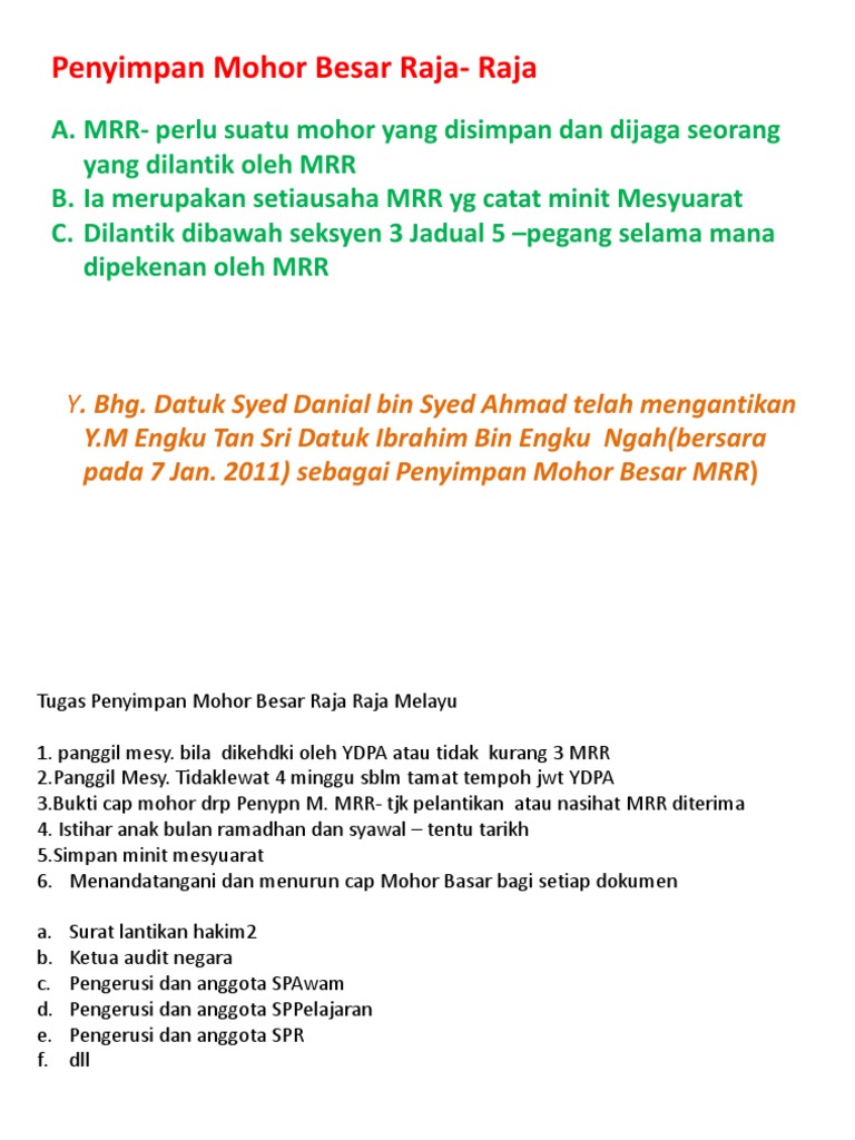 Peranan Penyimpan Mohor Besar Raja Raja Dalam Majlis Raja Raja